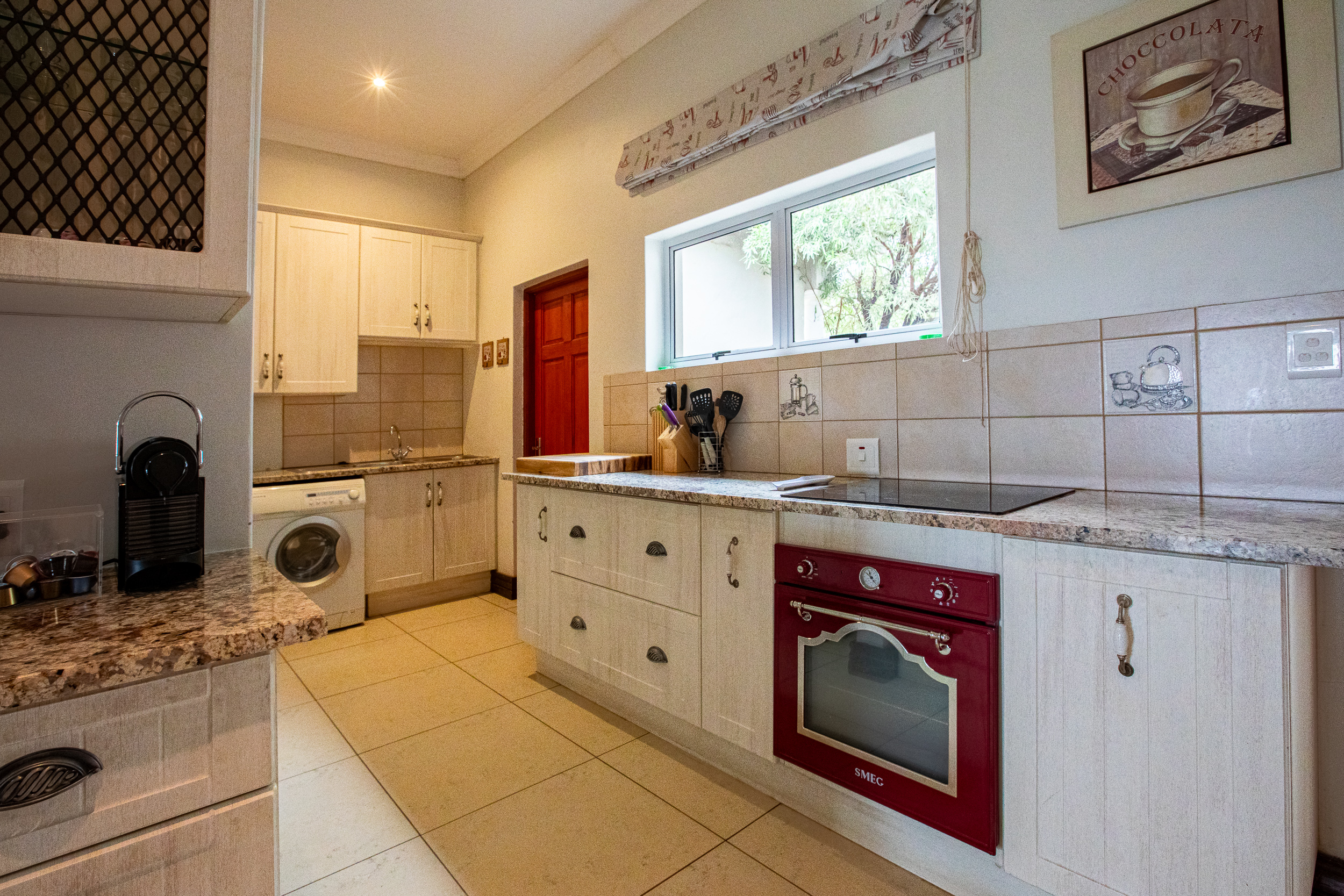 The kitchen is fully equipped for self-catering, with a microwave, air fryer, stove, kettle, toaster, Nespresso coffee machine and all the necessary crockery, pots and pans. Two of the bedrooms are fitted with air-conditioning for added comfort. The property also offers a garage and a double carport, providing ample parking.
